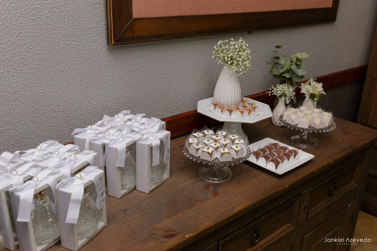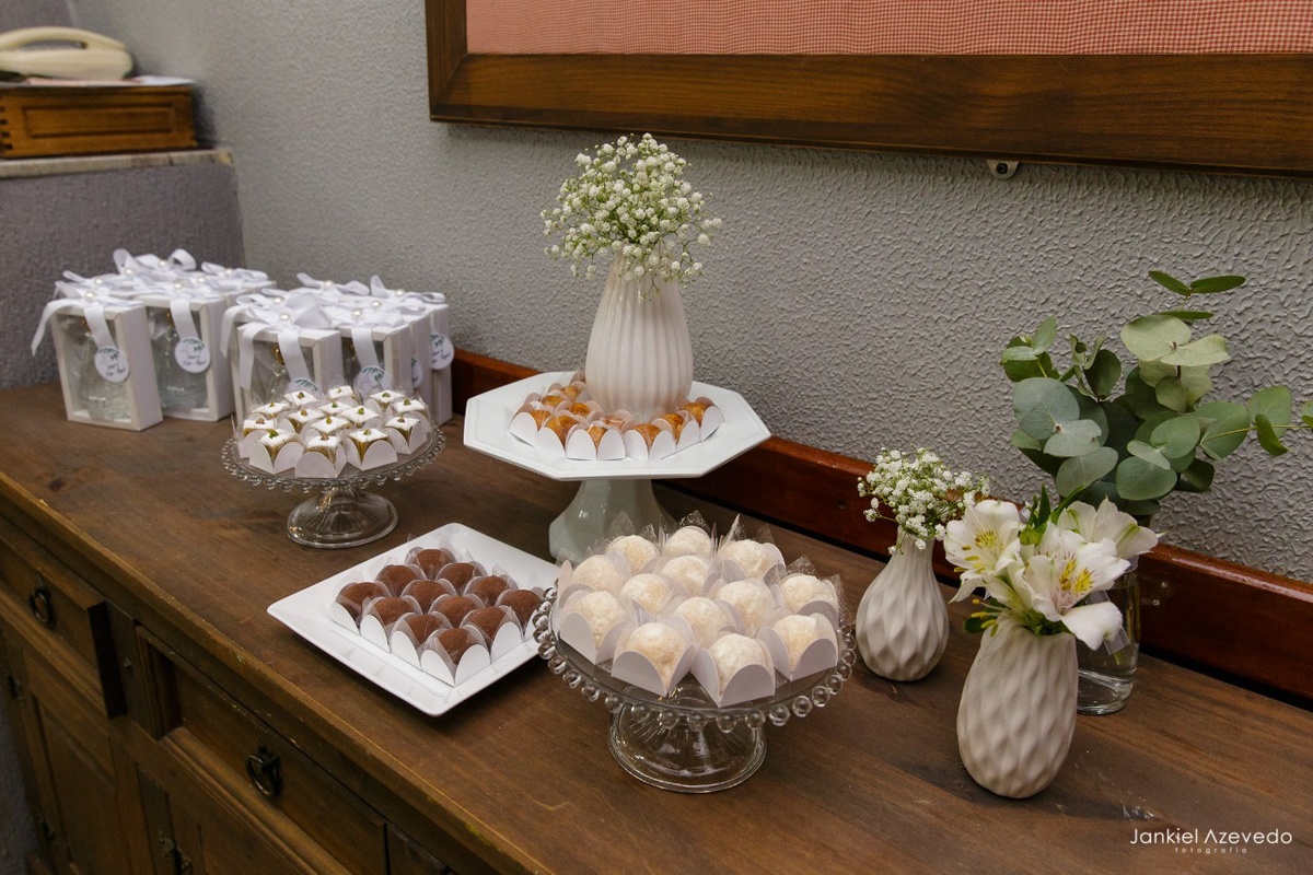 Para compor a mesa de doces deste evento, foram escolhidos Frangipane de Pistache, Hóstia de Coco, Brigadeiro de Nutella com Leite Ninho, Dourado, Brigadeiro de Kinder Bueno e o Brigadeiro de Crème Brulée