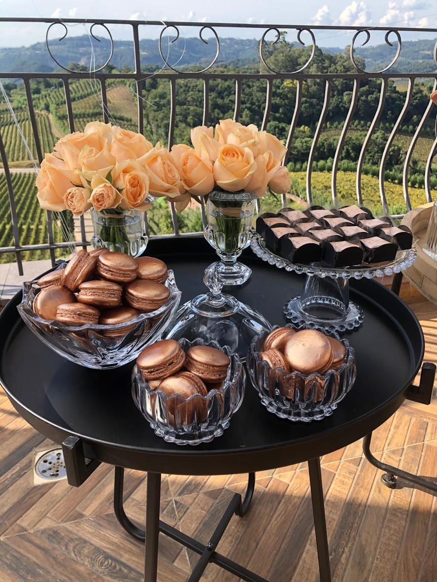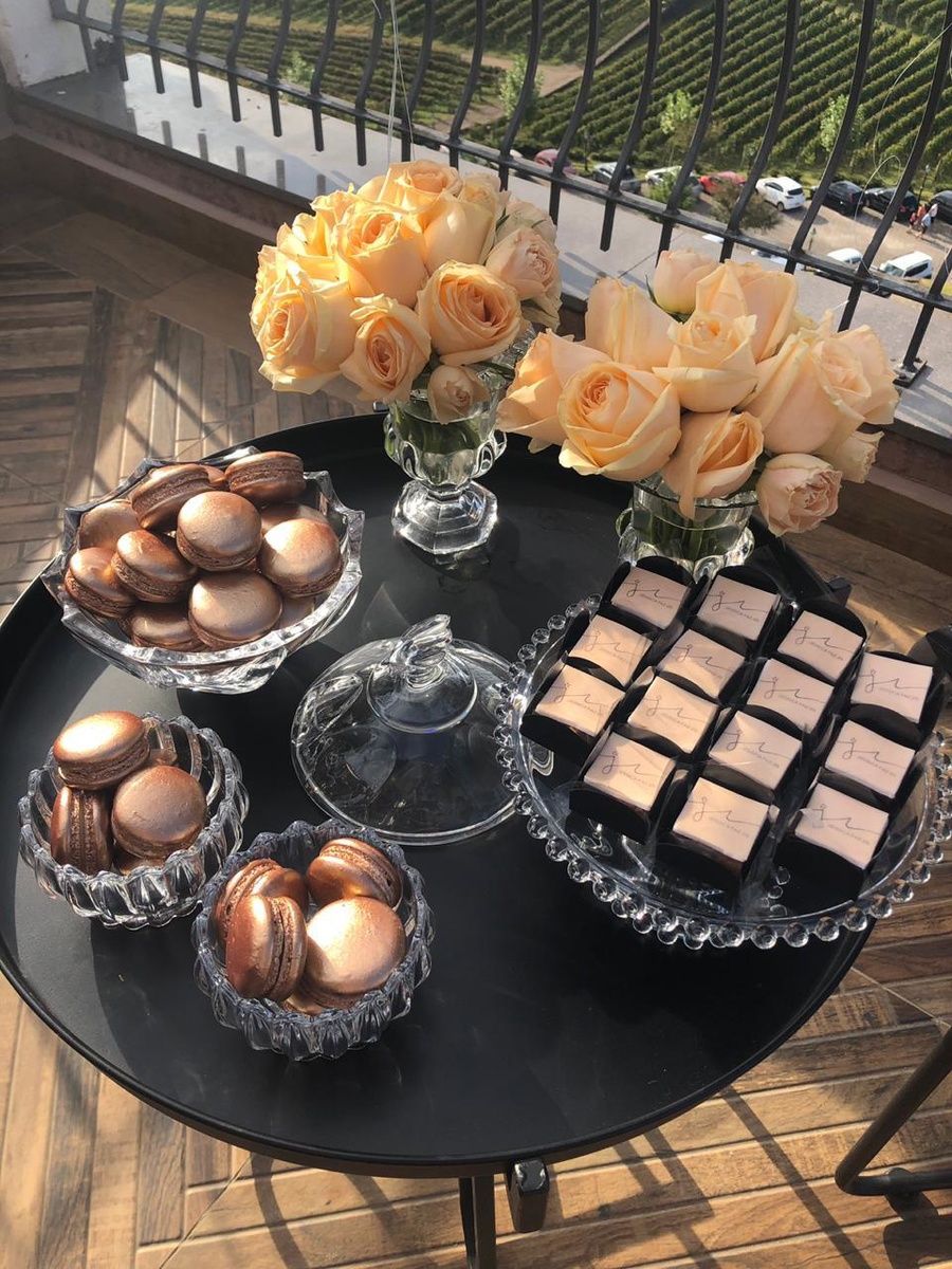 O evento foi assinado pela Michele Perin Party Design, que solicitou à doçaria Macarons Rose Gold. Além de deixar a festa mais saborosa, os macarons complementaram a decoração da festa.