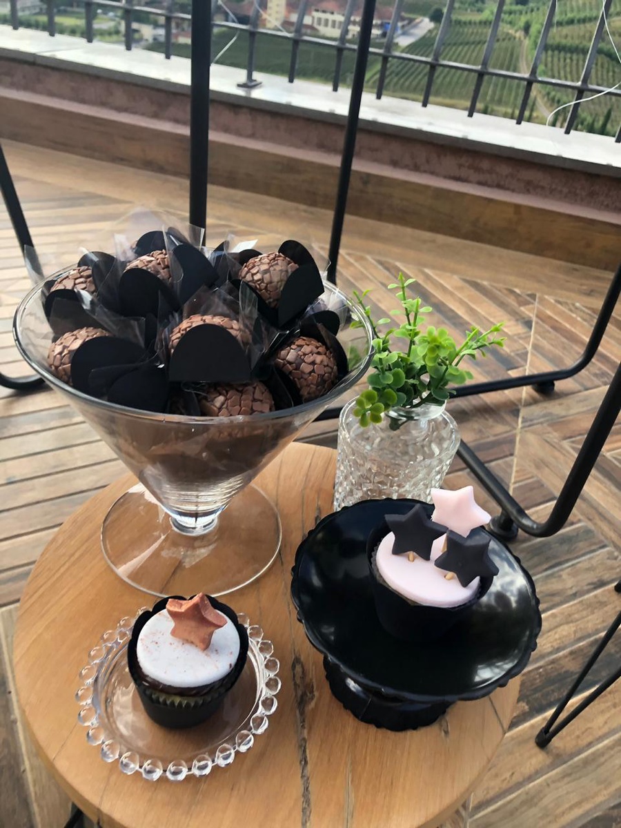 Jéssica também preferiu os brigadeiros tradicionais para compor a mesa de doces.